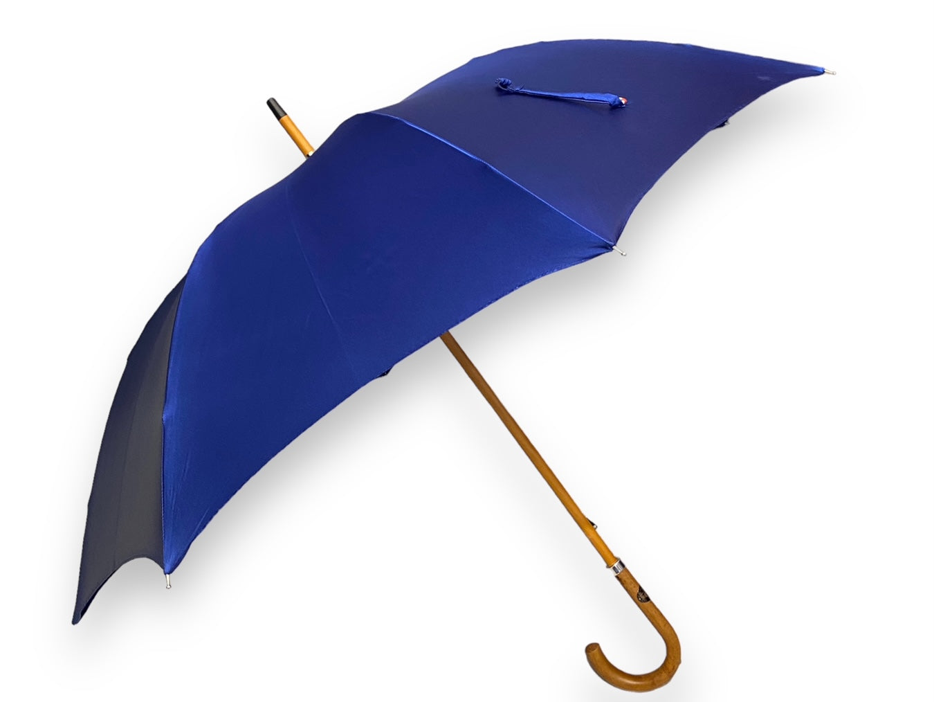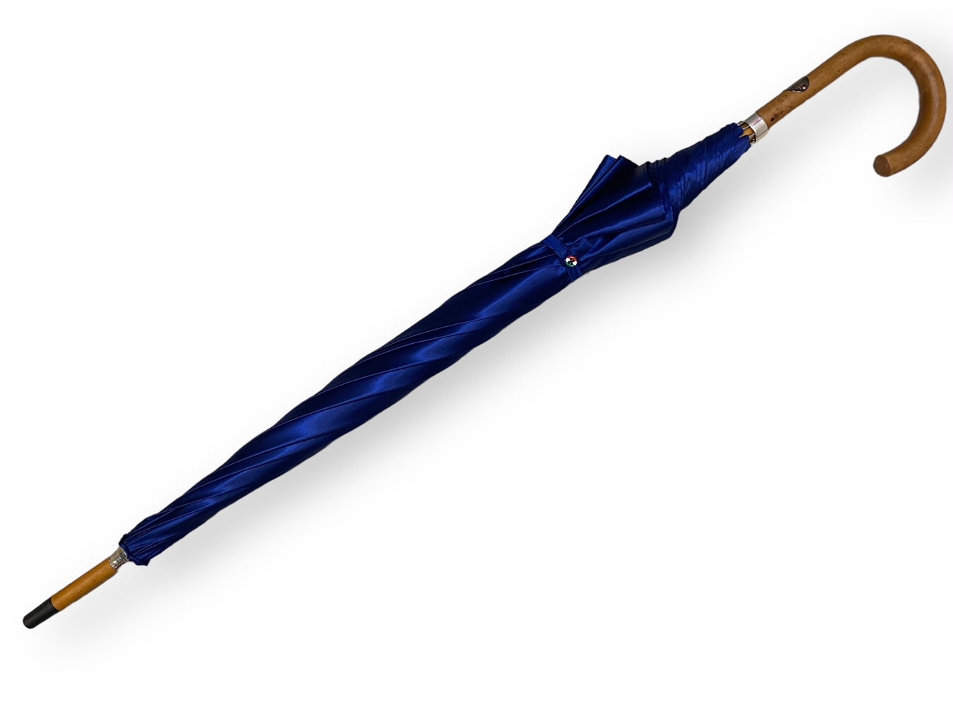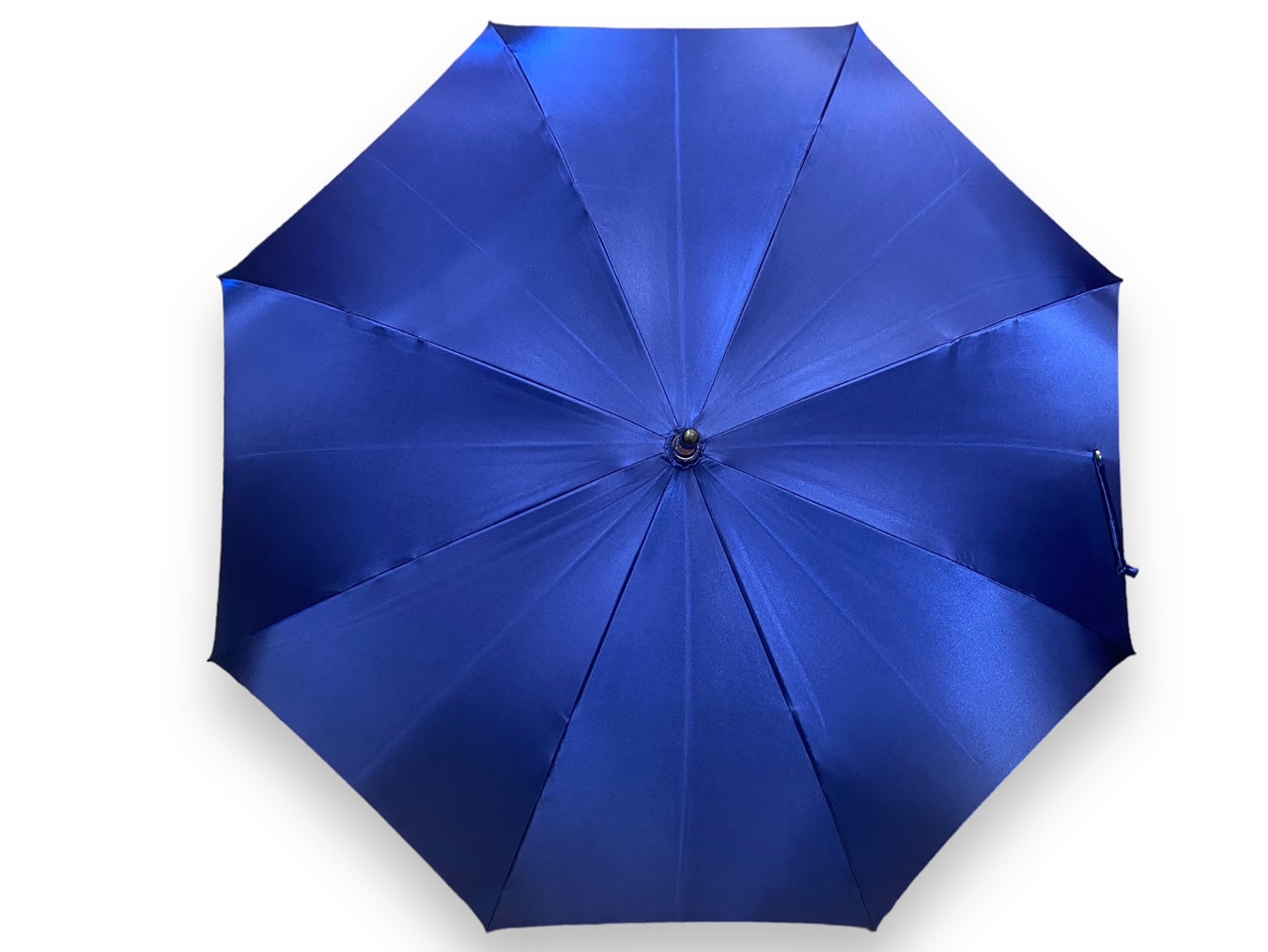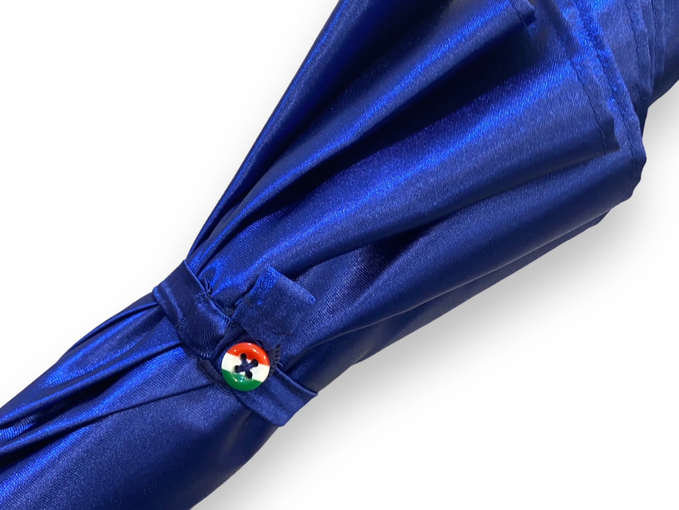 Ombrello classico Blu lucido manico in Canna di Malacca. Lavorazione artigianale Ombrelli Domizio dal 1989 Made in Italy