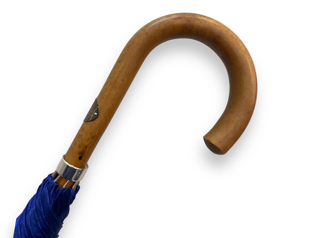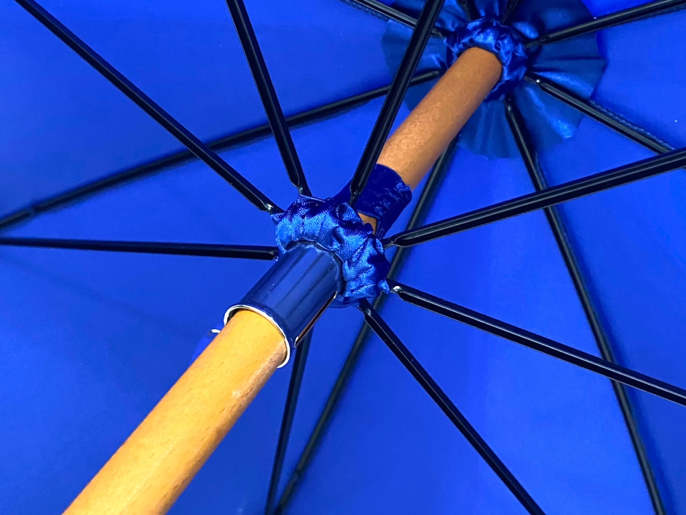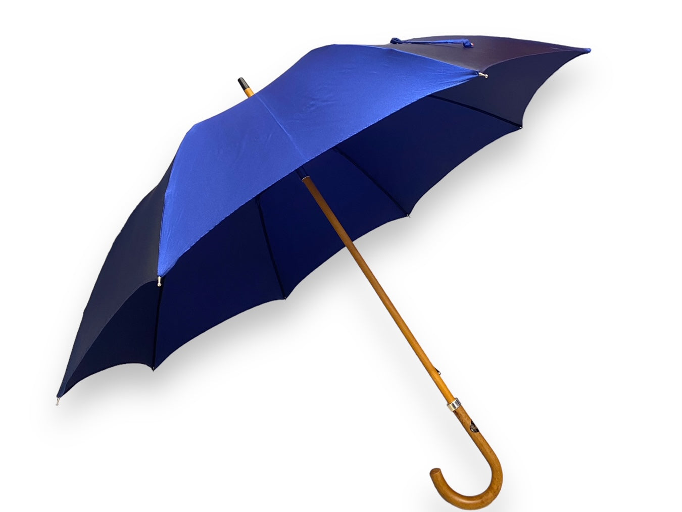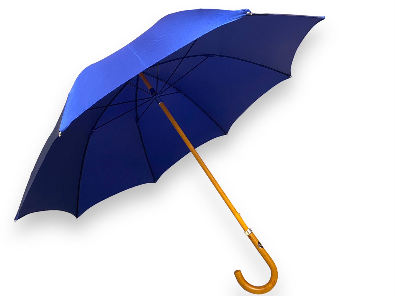 Ombrello classico Blu lucido manico in Canna di Malacca. Lavorazione artigianale Ombrelli Domizio dal 1989 Made in Italy
