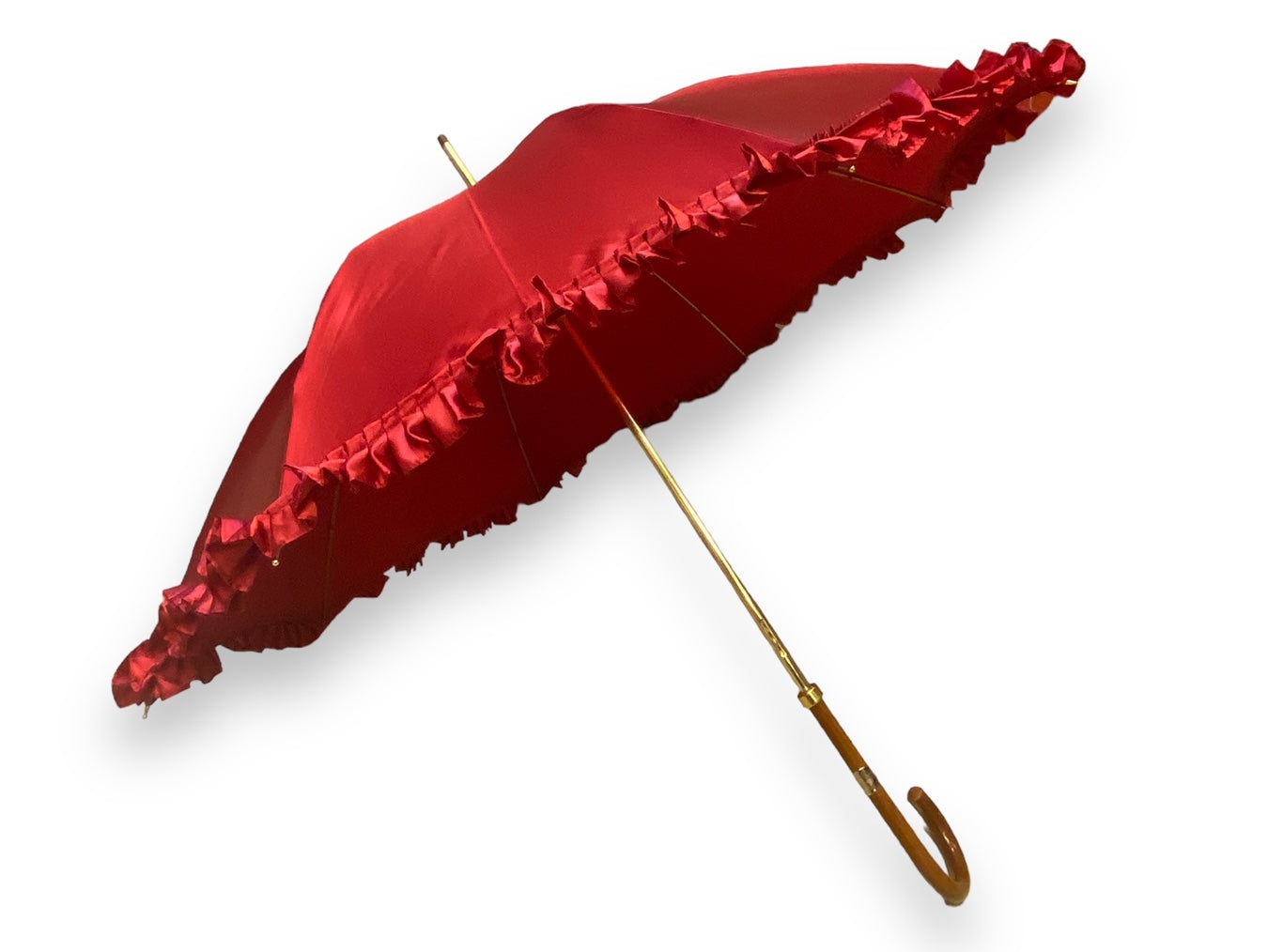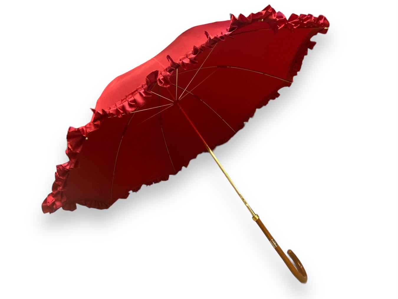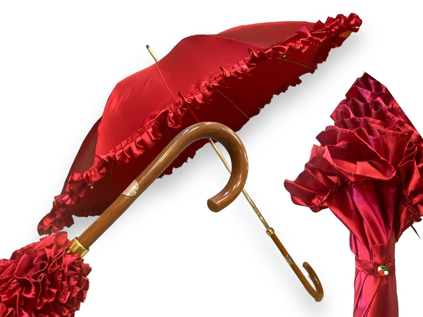 Ombrello Donna "stile 800" Colore Rosso lucido manico in canna di Malacca lavorazione artigianale Ombrelli Domizio dal 1989 Made in Italy