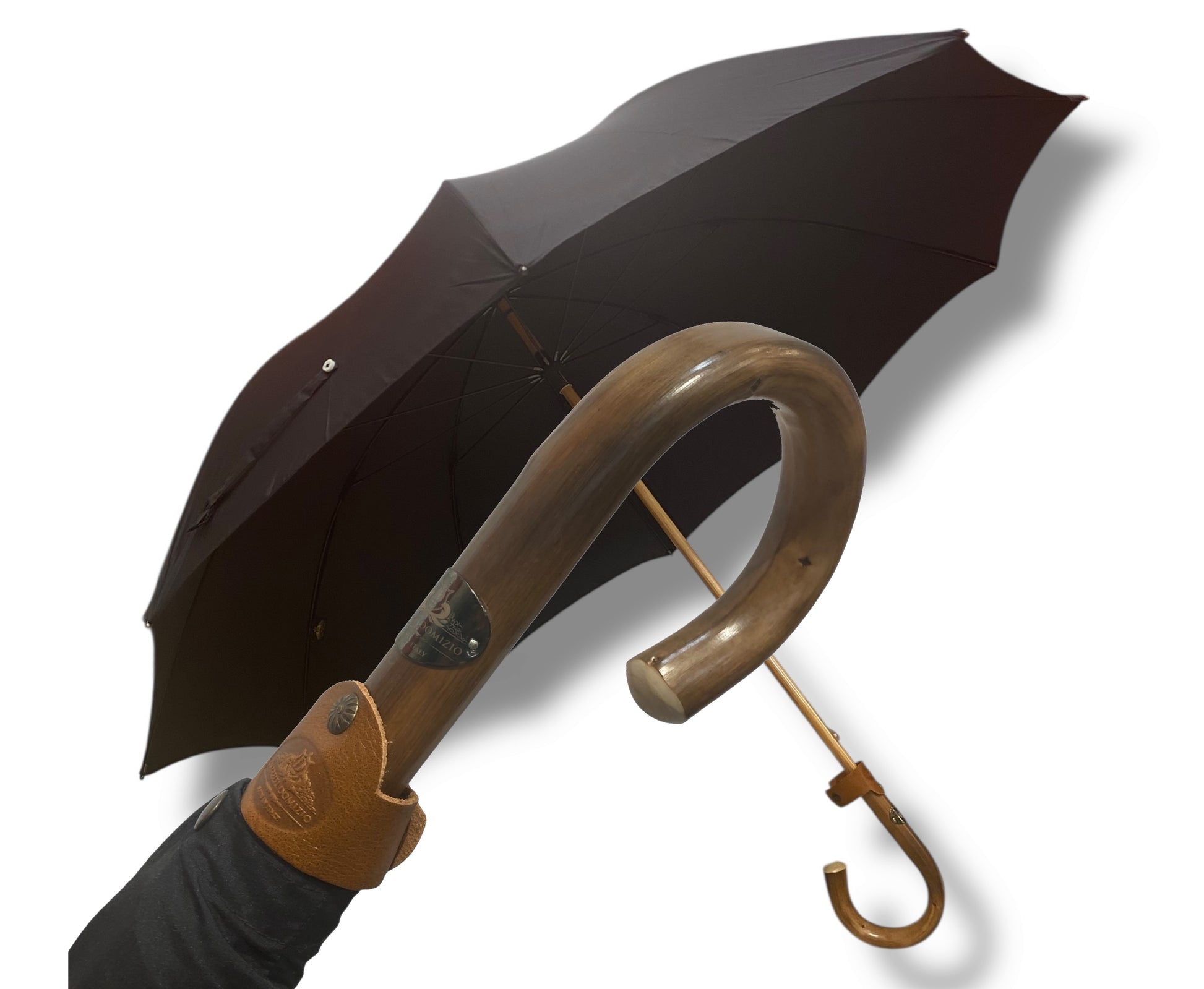 IL Gigante della Pioggia BIG manico in Castagno 10 stecche fibra di carbonio Lavorazione artigianale Ombrelli Domizio dal 1989 Made in Italy