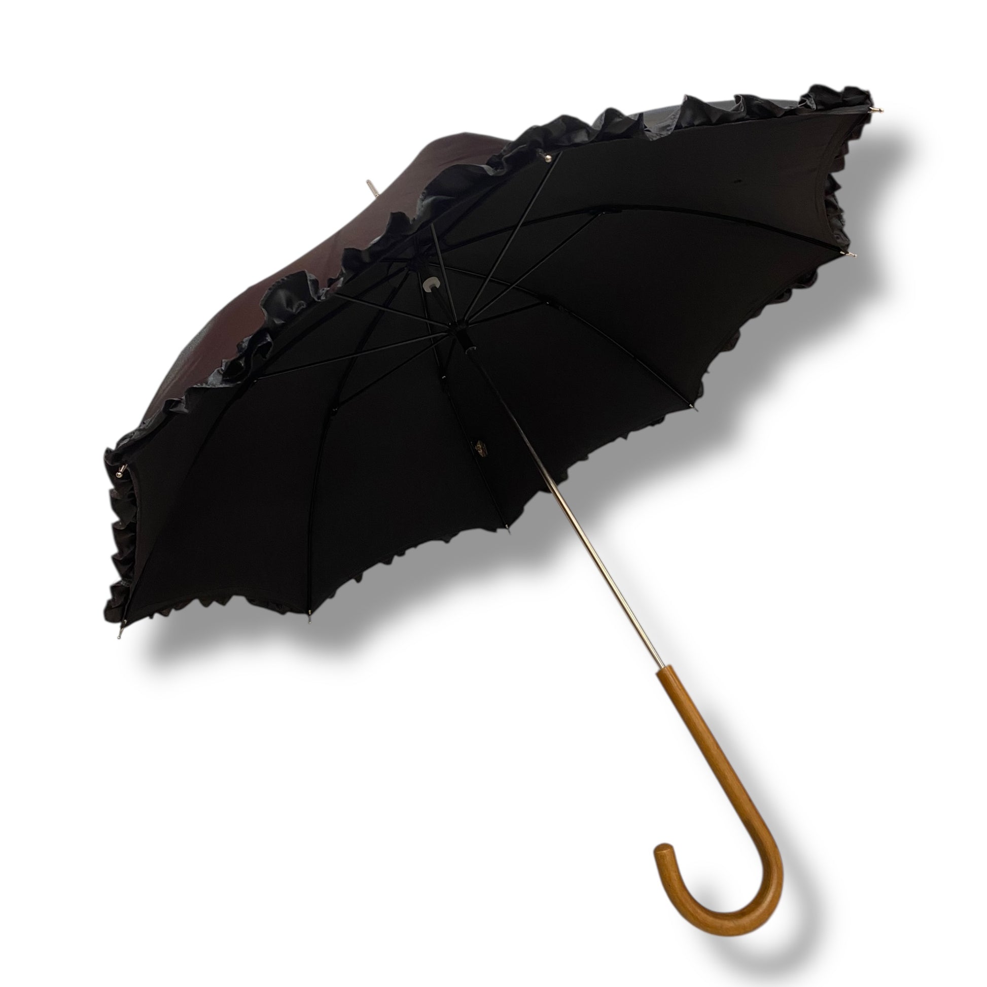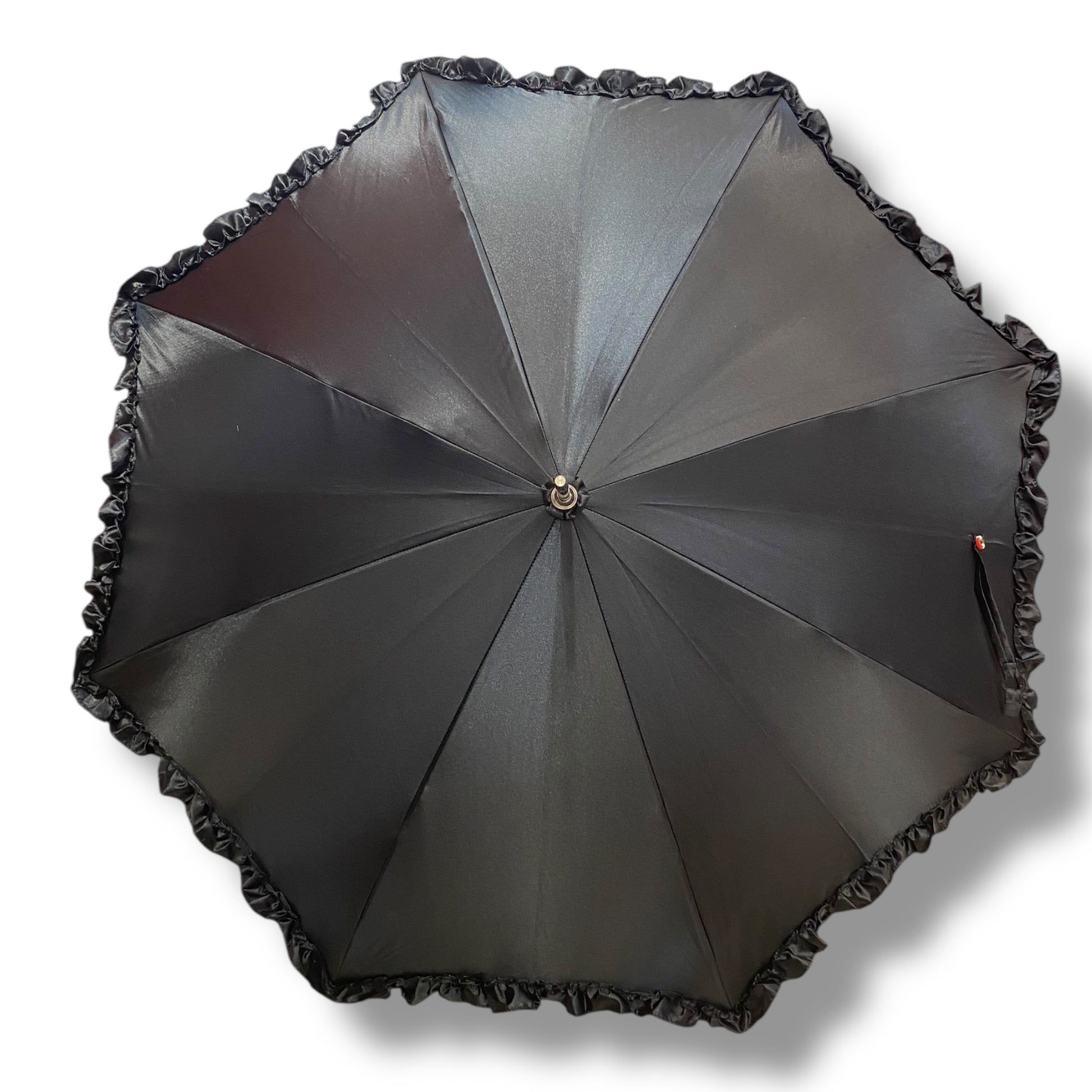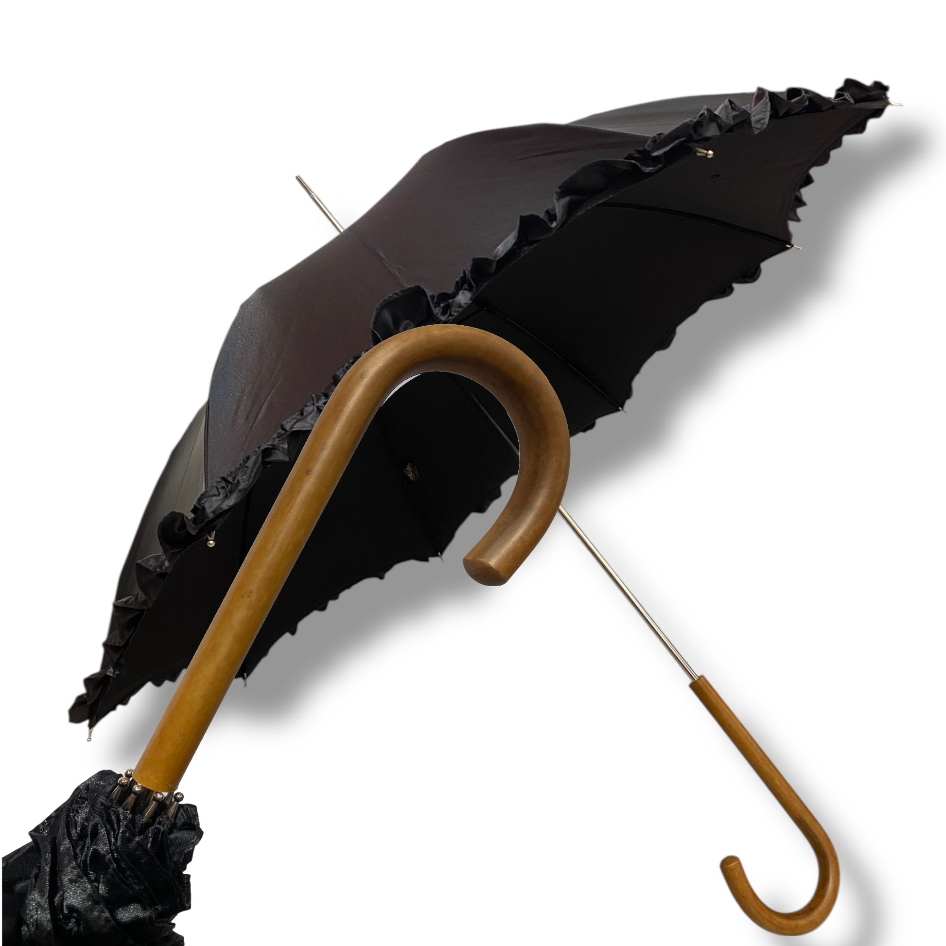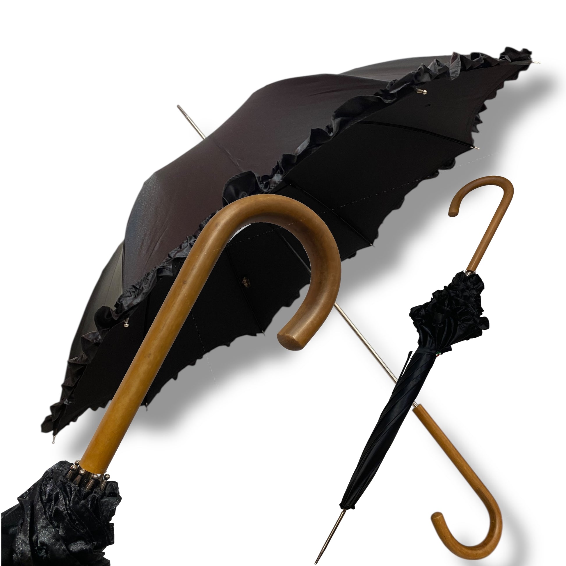 Ombrello classico stile 800 manico in Canna di Malacca lunga tessuto lucido lavorazione artigianale Ombrelli Domizio dal 1989 Made in Italy