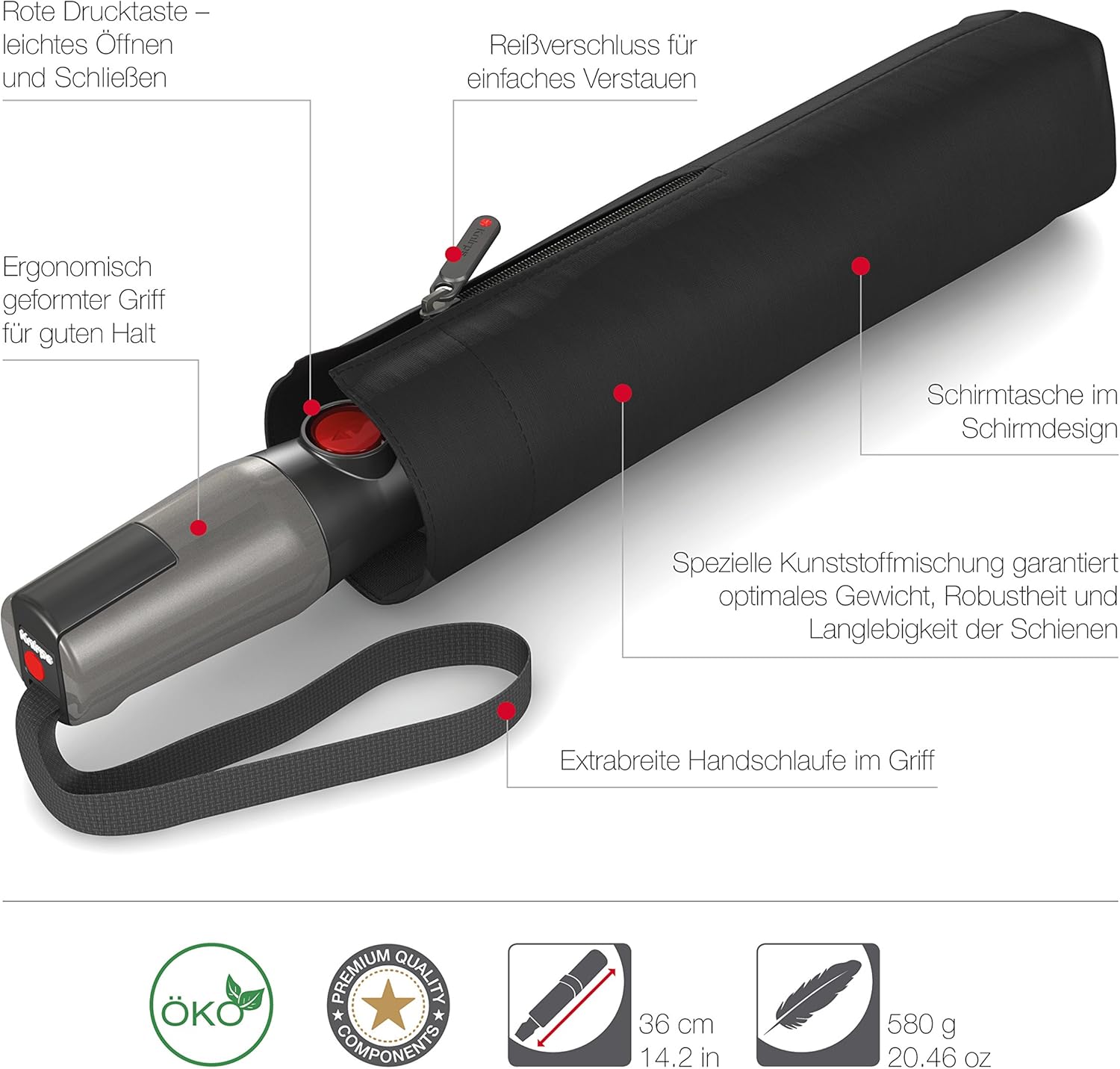 Ombrello tascabile Knirps T.400 Duomatic Uni - apertura e chiusura automatica - antivento - nero