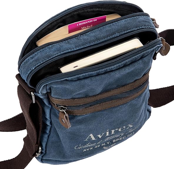Avirex, 140506 Borsello da uomo grande con tracolla e dettagli in vera pelle - Blu CNV0H