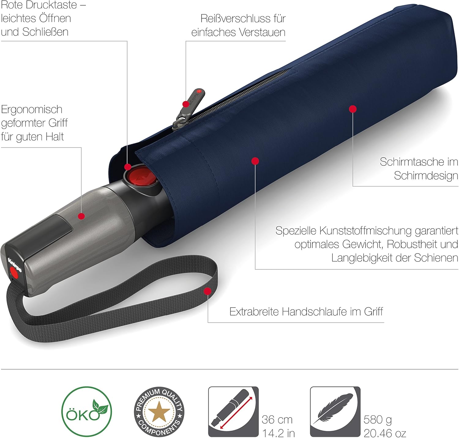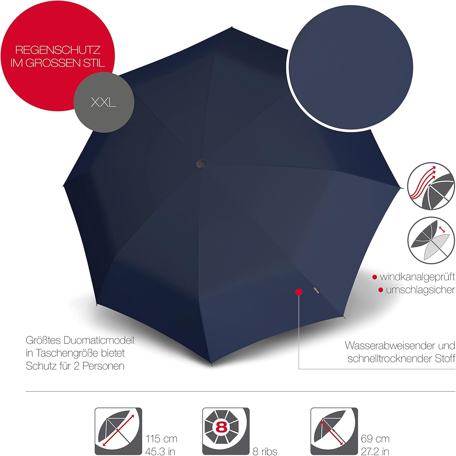 Ombrello tascabile Knirps T.400 Duomatic Uni - apertura e chiusura automatica - antivento - Blu scuro