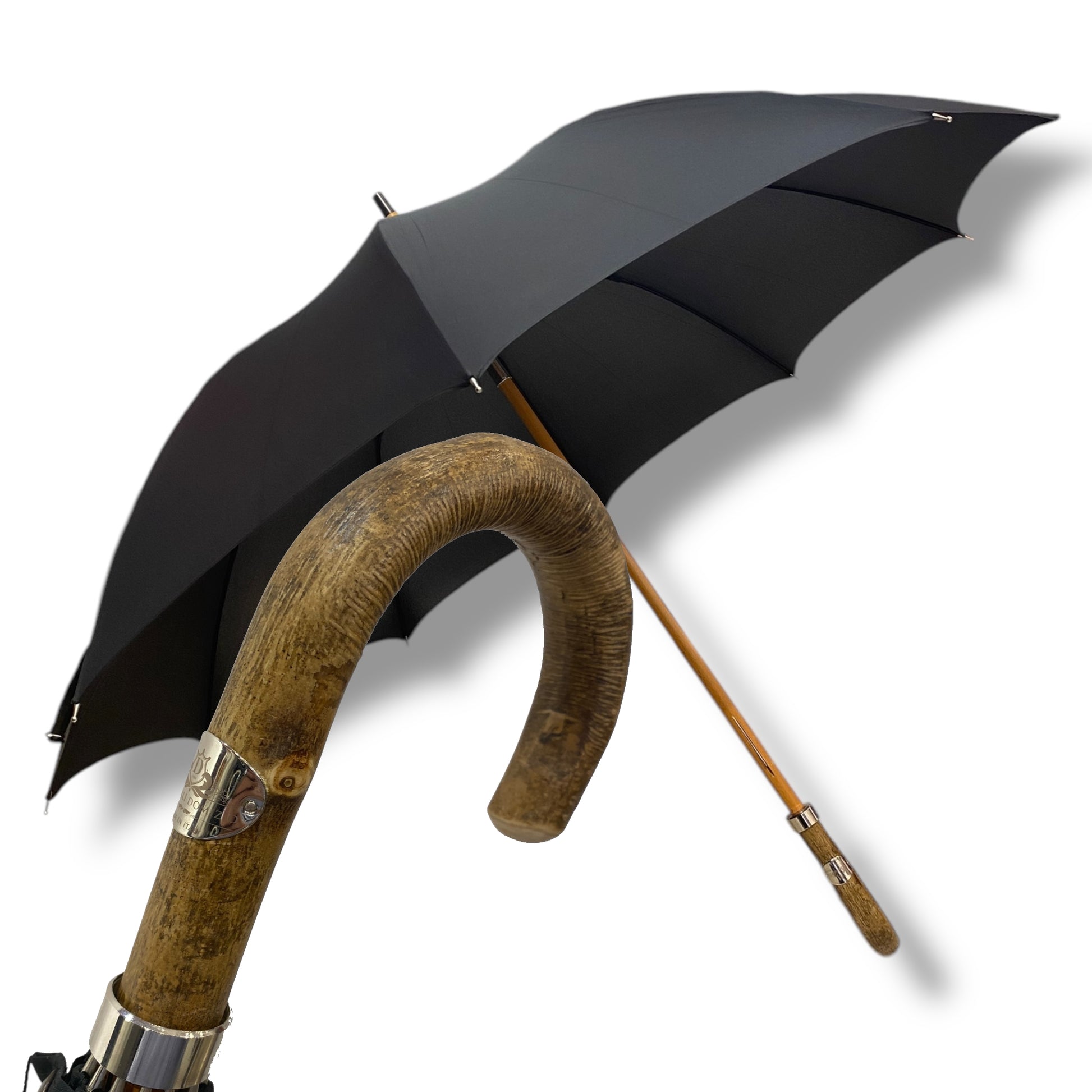 Ombrello Artigianale, manico in legno di Frassino - colore Nero Ombrelli Domizio dal 1989 Made in Italy
