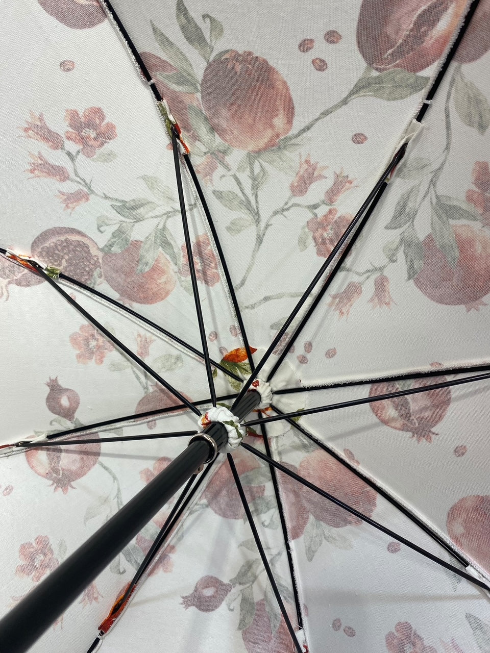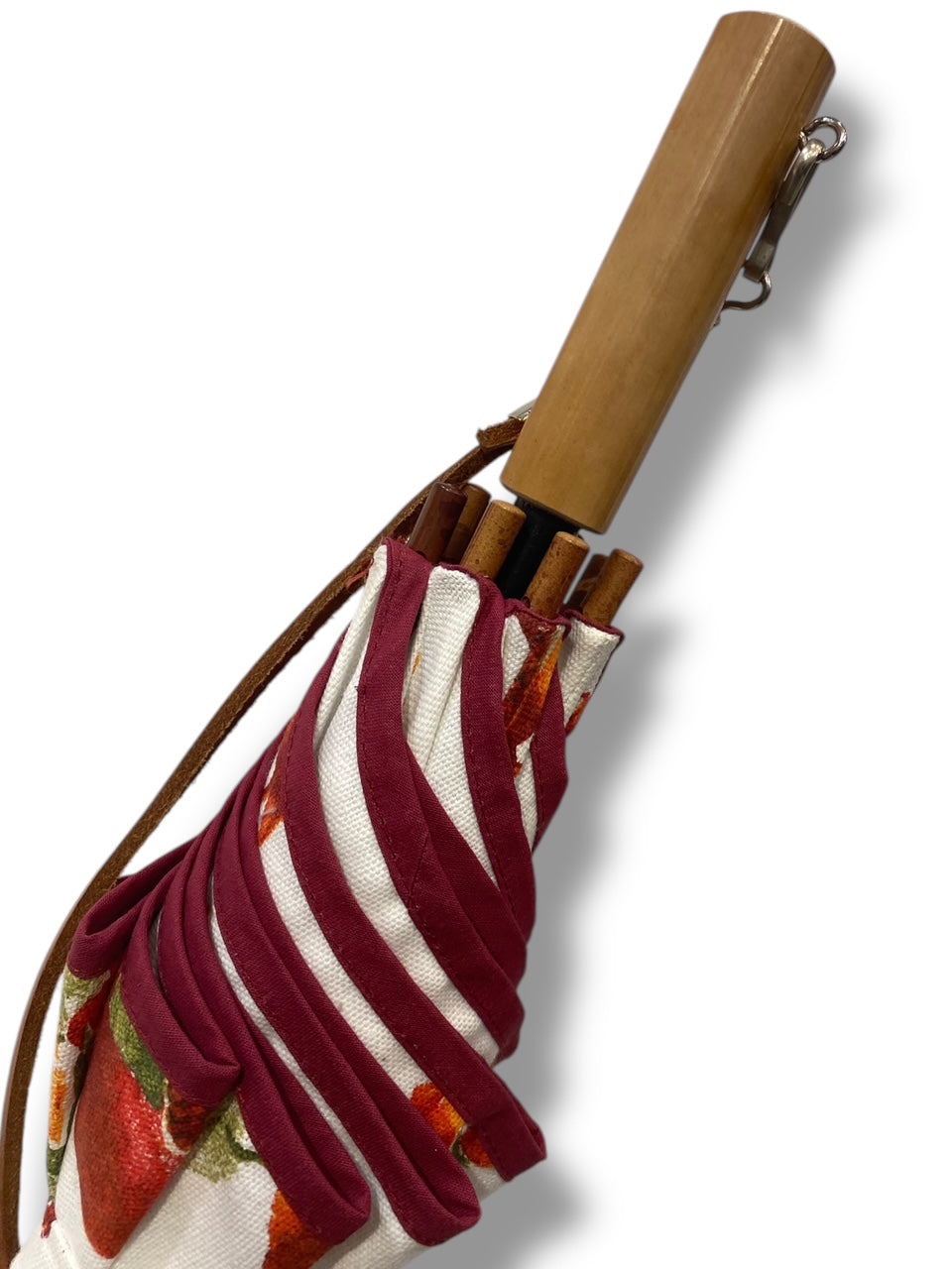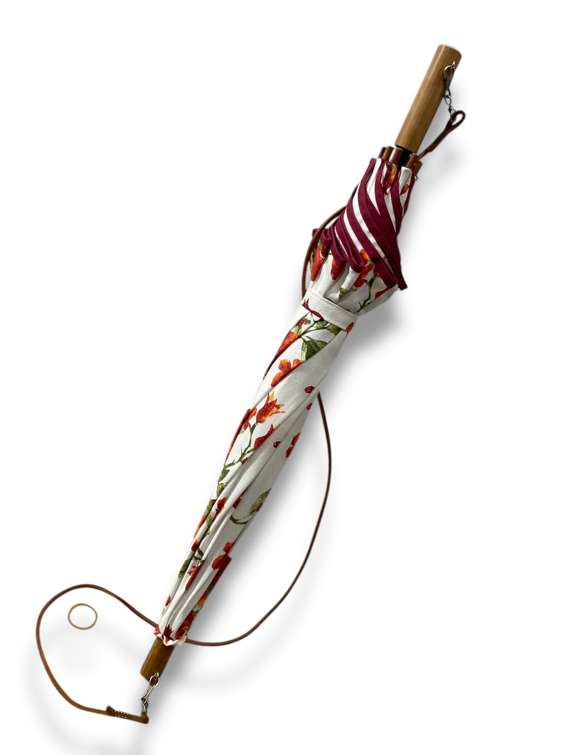 Ombrello Parasole 100% cotone manopola in Canna di Malacca tracolla cuoio fantasia F3