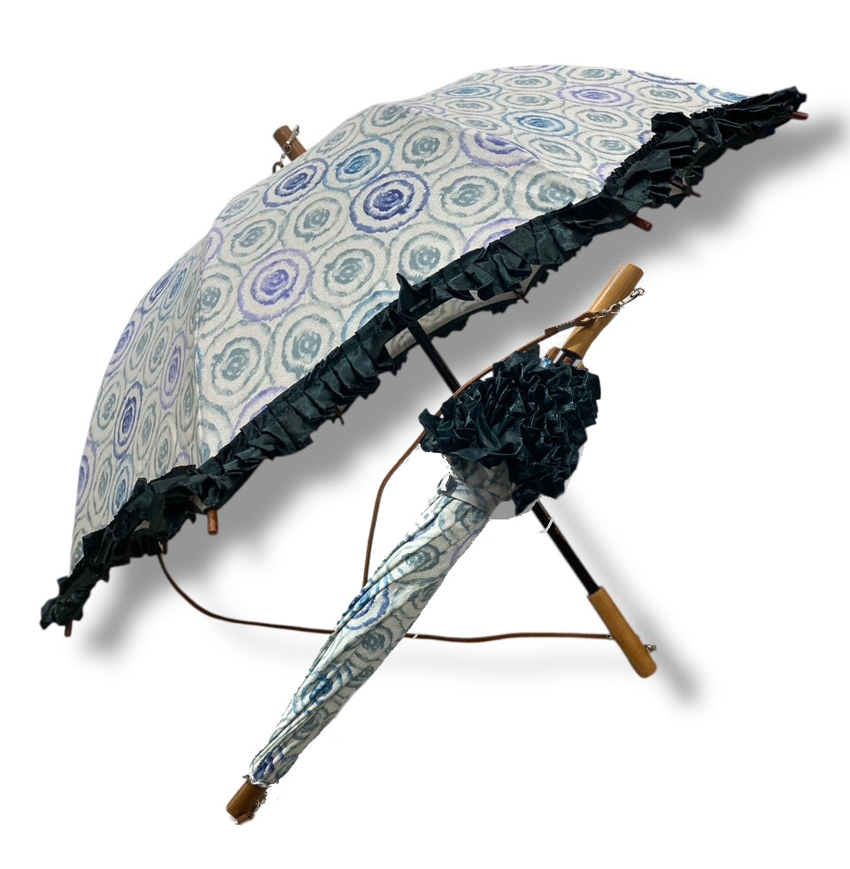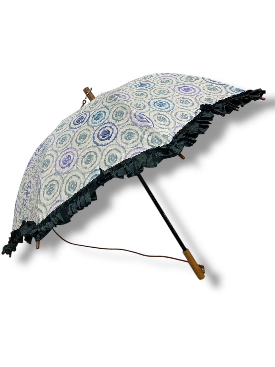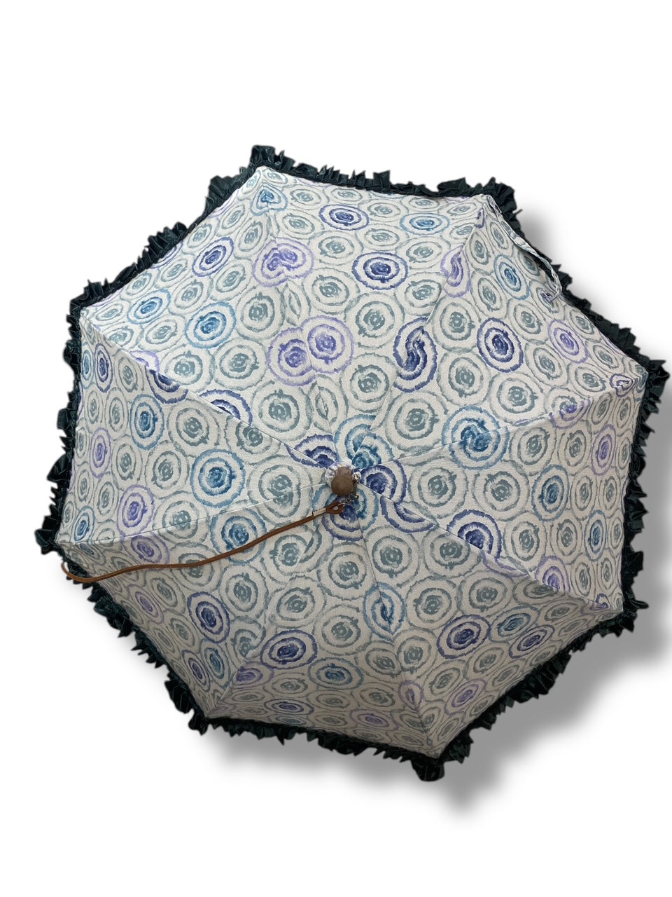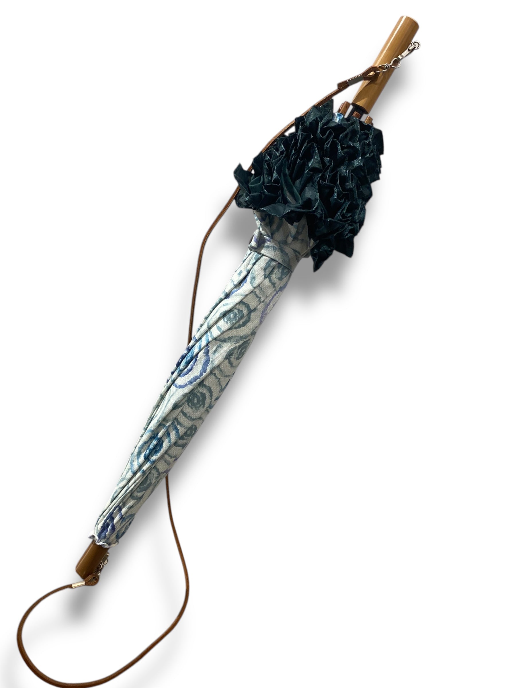 Ombrello Parasole 100% cotone manopola in Canna di Malacca tracolla cuoio fantasia F4