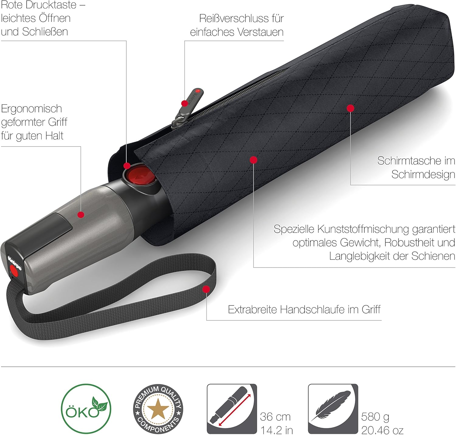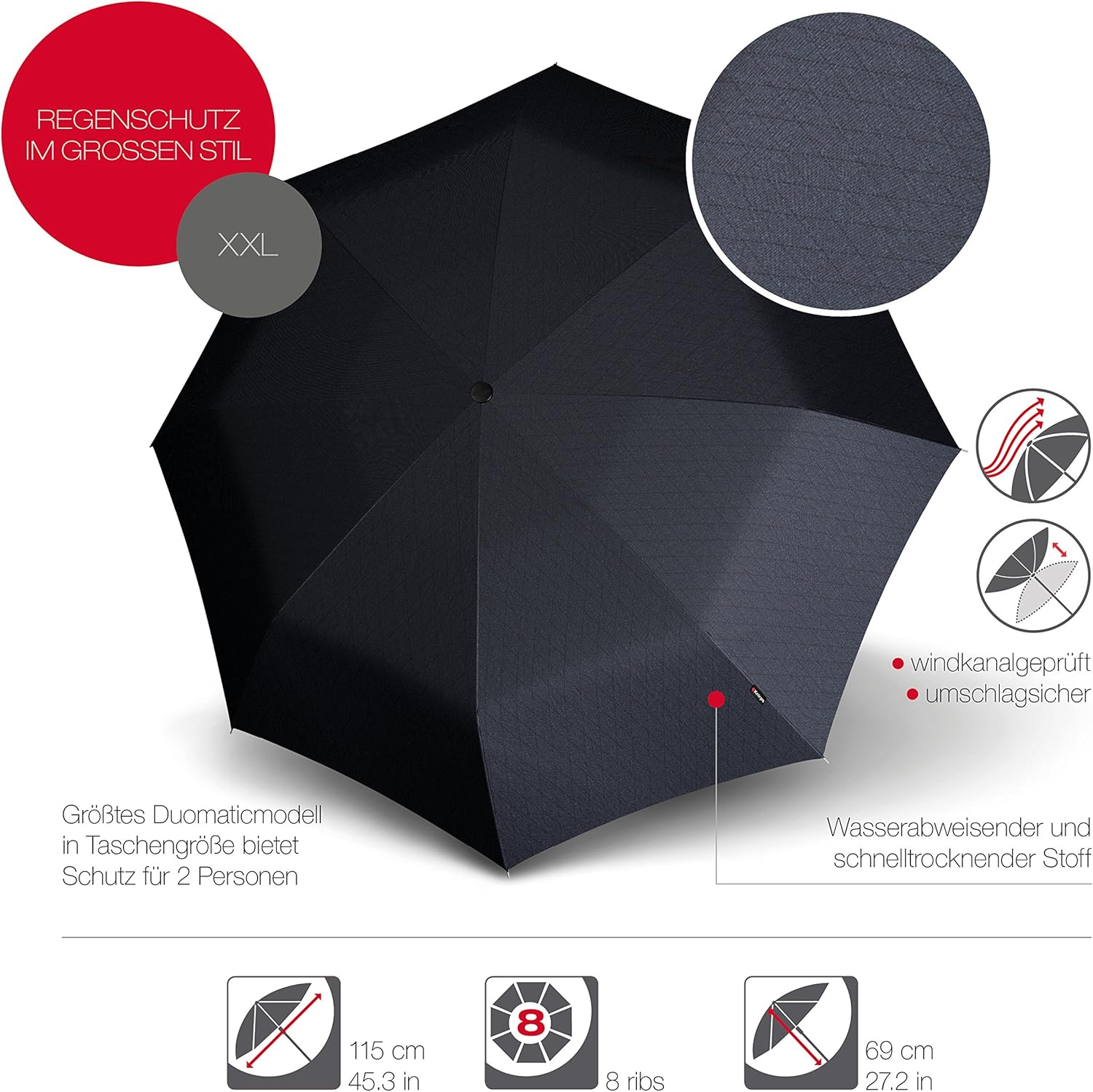 Knirps, Collezione T.400, Ombrello Duomatico con Sistema Apertura e Chiusura Automatica, Antivento fantasia Rombi