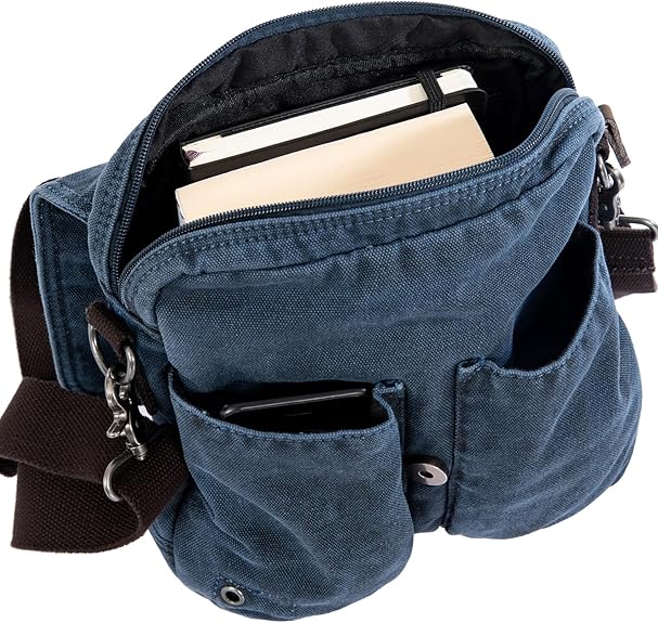 Avirex, 140506 Borsello da uomo grande con tracolla e finiture in vera pelle Blu CNV0C