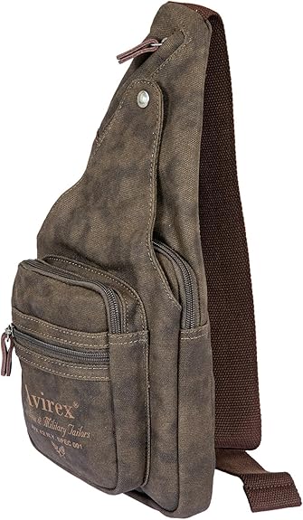 Avirex, Monospalla con Tracolla Regolabile, in Canvas Spalmato con Dettagli in Ecopelle, Borsa Monospalla da Uomo, Collezione Pasadena, Verde PSD20