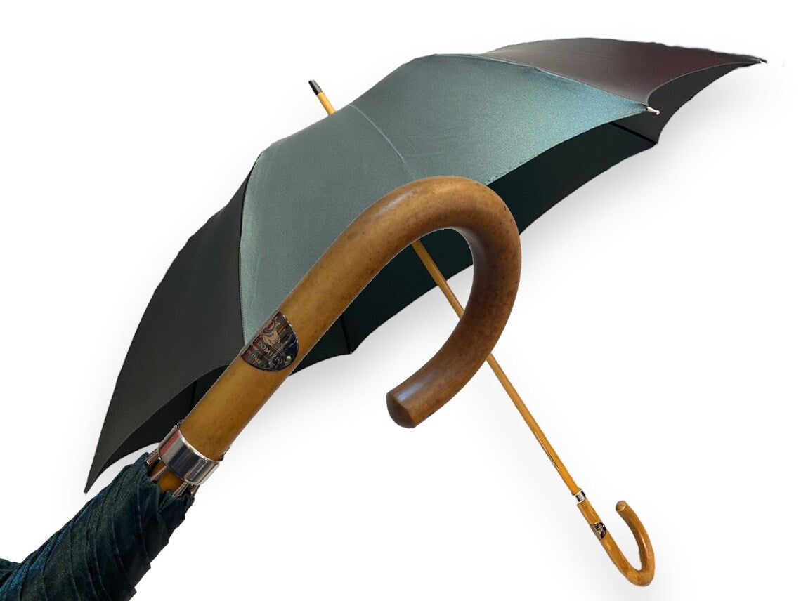 Ombrello classico unisex Verde scuro lucido manico in Canna di Malacca. Lavorazione artigianale Ombrelli Domizio dal 1989 Made in Italy