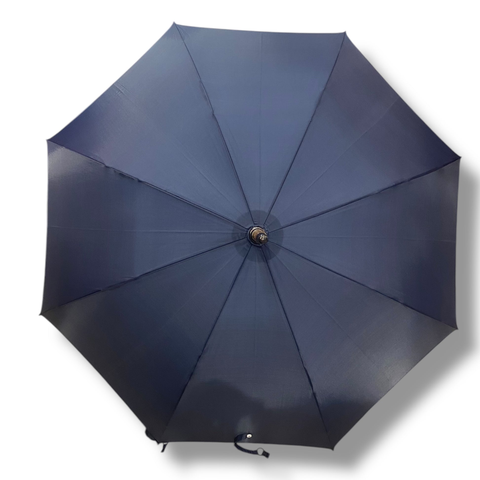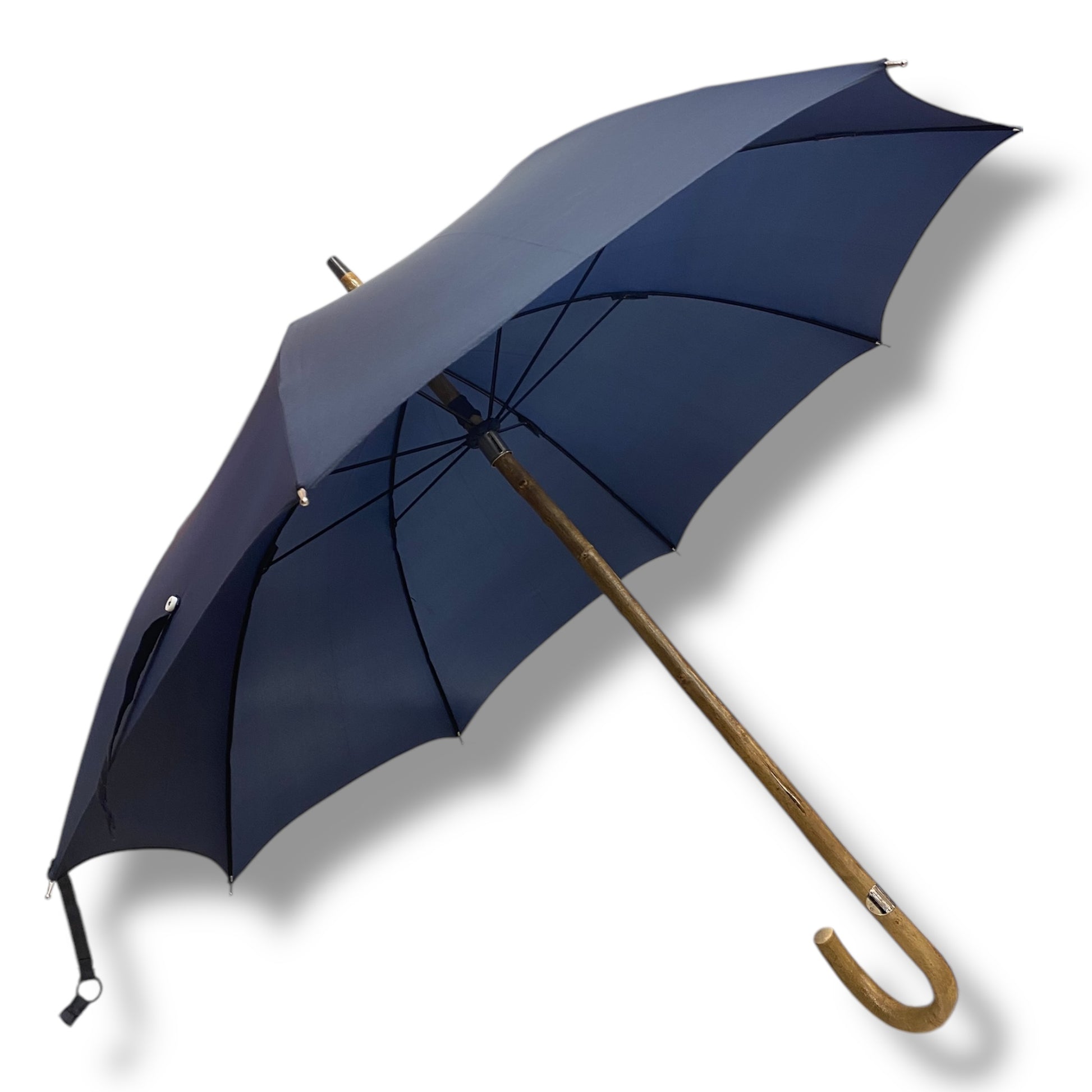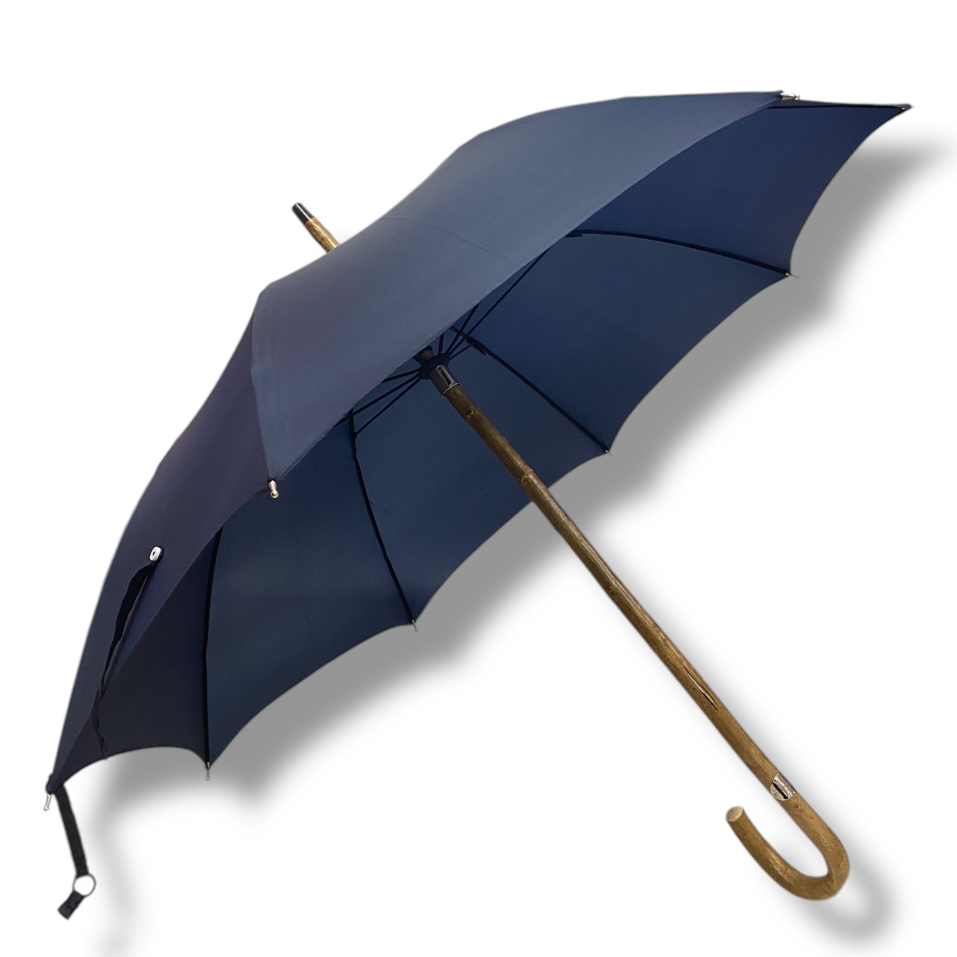 Ombrello classico uomo Bastone intero in legno di Frassino puntale in corno colore blu scuro